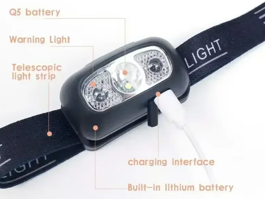 Lampe frontale à lumière forte, Portable avec capteur LED - Rechargeable par USB-C