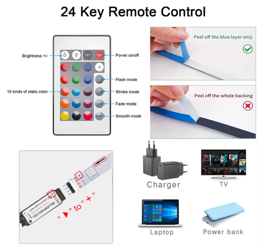 Bande lumineuse Led avec télécommande à 24 touches - Longueur de 2m