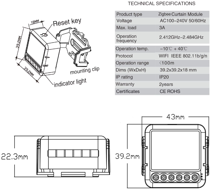 Transformez vos rideaux, stores ou volets roulants motorisés en appareils intelligents avec ce module de commande Zigbee 3.0. Grâce à sa taille ultra-compacte, il s'intègre discrètement derrière vos interrupteurs existants pour vous offrir un contrôle total, où que vous soyez.