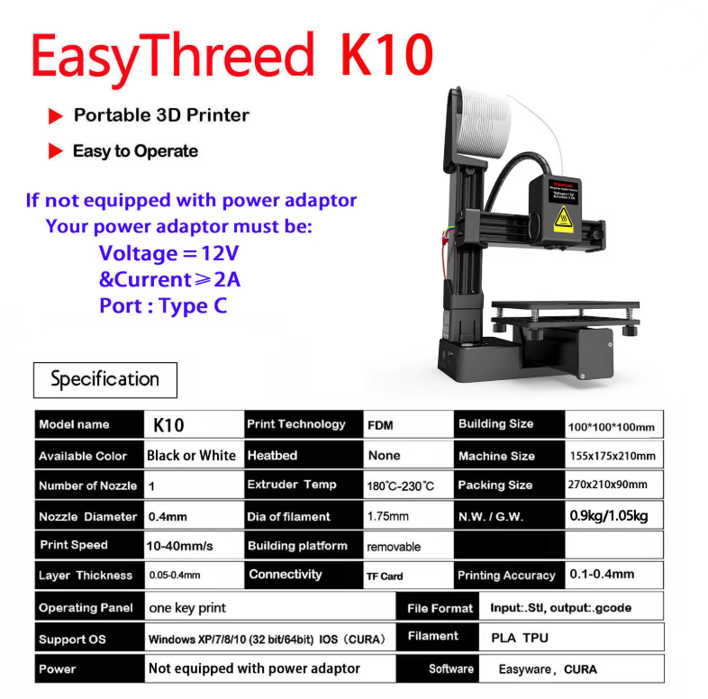 Découvrez l'univers de la fabrication additive avec la EasyThreed K10, une imprimante 3D compacte spécialement conçue pour les débutants, les familles et le milieu éducatif. Grâce à son interface intuitive et son fonctionnement ultra-silencieux, elle s'intègre parfaitement dans un bureau ou une chambre pour donner vie à vos idées en toute simplicité.