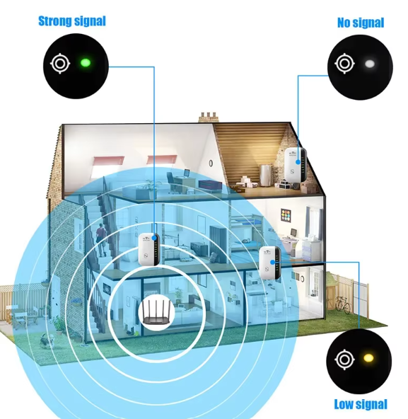 2.Compatibilité universelle et configuration facile : cette rallonge WiFi peut être utilisée avec n'importe quel routeur Internet sans fil 802.11b/g/n/a, ce qui signifie qu'elle peut être utilisée avec n'importe quel routeur ou passerelle standard.